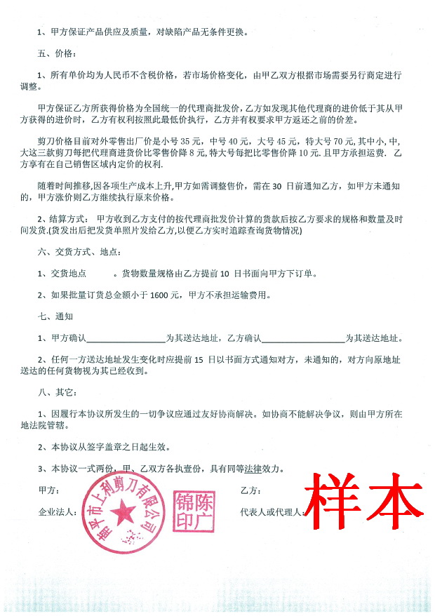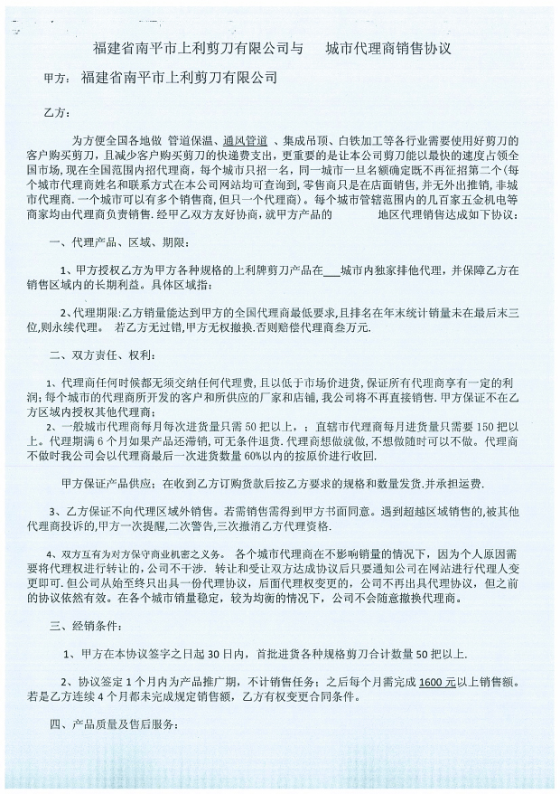 全國(guó)各地代理商代理合同樣本