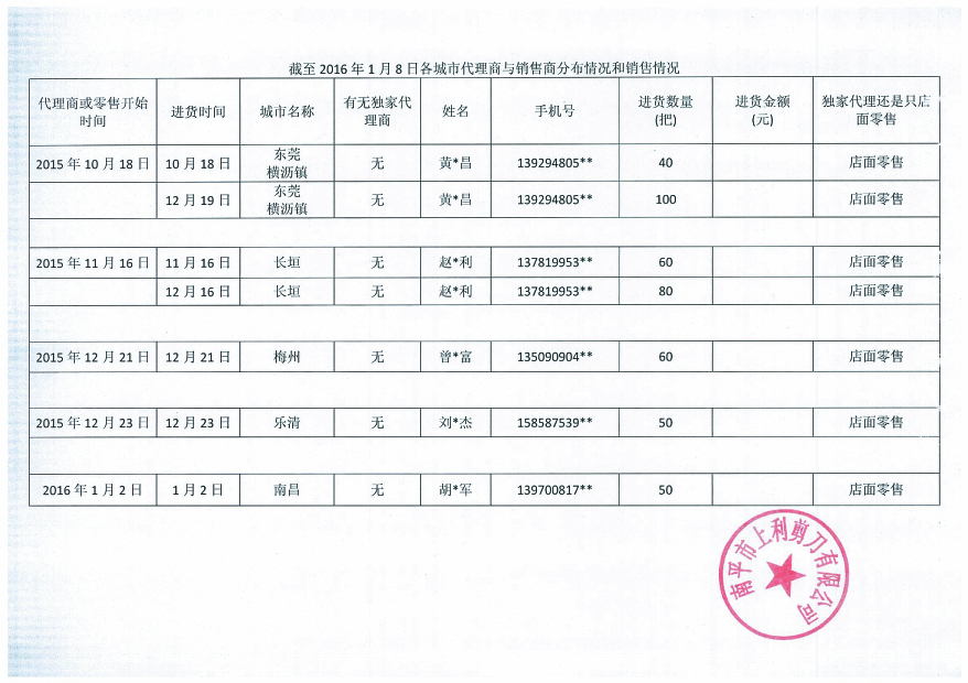 各城市代理商和零售商分布情況